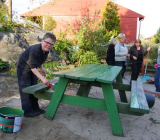 Det ble fylt på ny sand i alle sandkassene, raket bort ugress og klippet busker og småtrær. Sandkasser og benker ble malt opp.